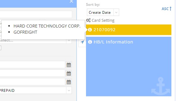 Previously, you can view the corresponding shipper and consignee when you hover over the information icon of a specific B/L card when it’s collapsed.
