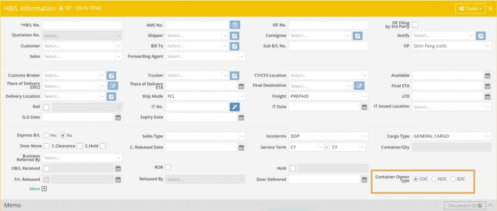 Upon request, you can enable the “Container Owner Type” to label your HB/L with one of the three options to help you better categorize your shipments :