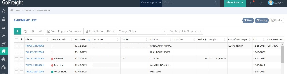 You can now add Color Remarks to your trucking shipments, which can also be found in one of the columns on the left side of the shipment list. Color Remarks allows you to easily set and quickly identify the different statuses of each shipment or invoice. Please contact our Support team for more details.